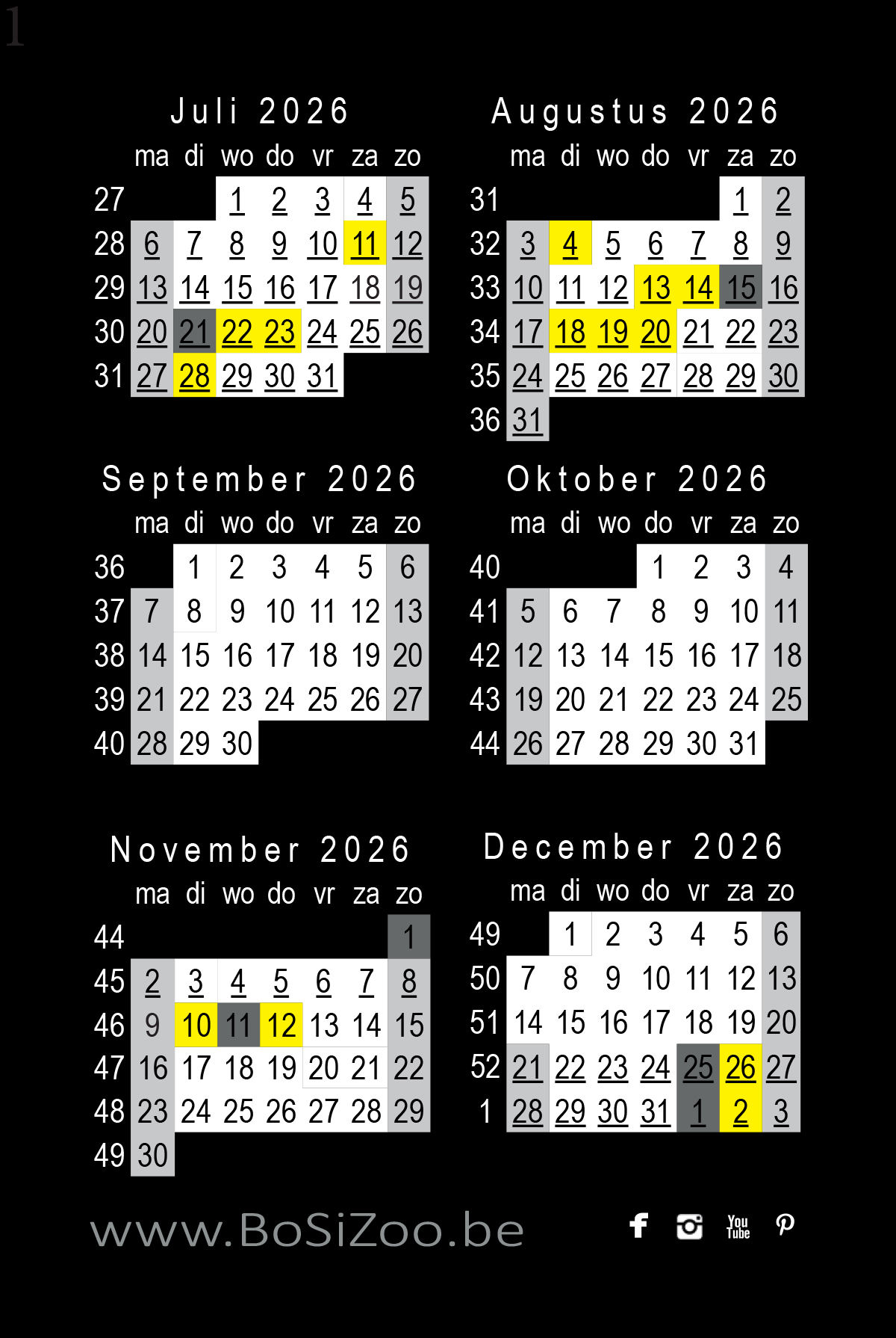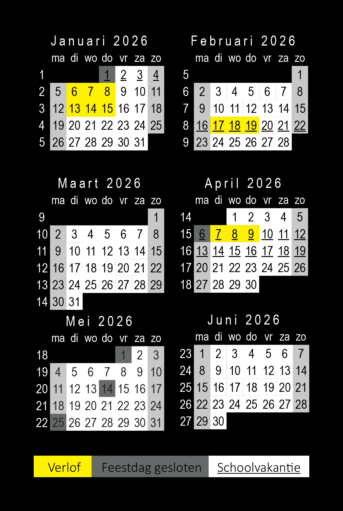 ZONDAG, MAANDAG en feestdagen